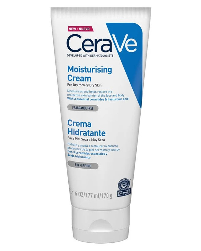 اگر مستعد پوست بسیار خشک هستید، مرطوب کننده ای را انتخاب کنید که حاوی موادی باشد که از از دست دادن آب ترانس اپیدرمی جلوگیری کرده و سد پوست را تقویت می کند. کرم مرطوب کننده CeraVe پوست بسیار خشک را آبرسانی می کند. سرامیدها و اسید هیالورونیک به پوست برای حفظ رطوبت کمک می کنند. علاوه بر این، این کرم از سد طبیعی پوست محافظت می کند تا از کم آبی و آسیب بیشتر جلوگیری کند.