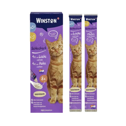 تشویقی مدادی گربه وینستون Winston با طعم مرغ و جگر و علف گربه ورق 10 عددی
